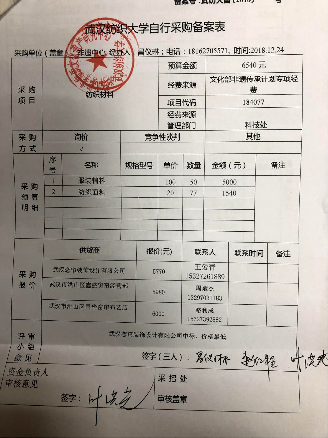 武陵山区土家族苗族服饰民俗传承人群研修班纺织材料采购项目备案公示