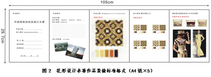 B.纺织品花形纹样设计与应用效果——整体尺寸为:宽105cm×高29.7cm(相当于5张A4复印纸并列大小);元素提取和创意设计要体现流行时尚、积极向上的健康文化和社会主流价值观,弘扬和传播正能量,拒绝低俗文化,作品主图像素300dpi,尺寸不小于15×15mm,所有内容要统一裱在一张卡纸上(排版格式参考图2)。