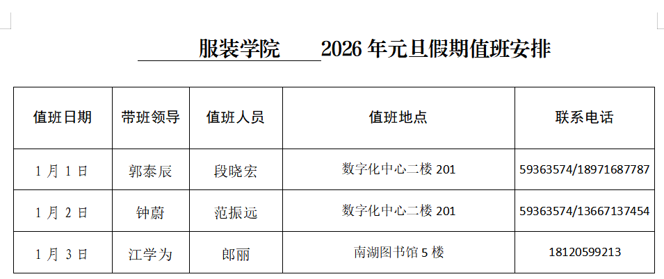 2025-2026(1)学期服装工艺实验室课外开放时间安排