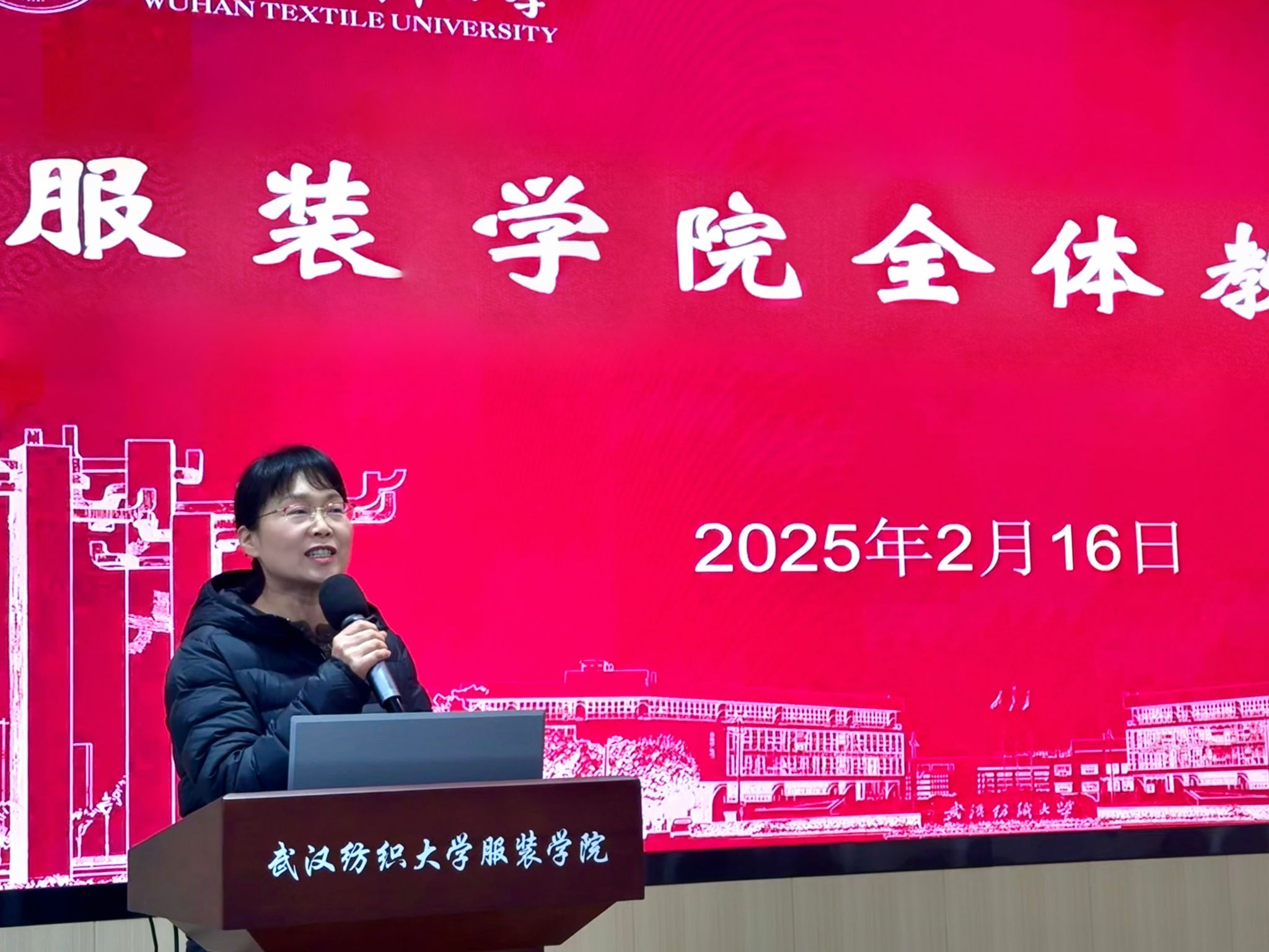 会议最后,陶辉院长作总结讲话。她对老师们过去一年的努力和共同取得的成绩给予了肯定。她指出,老师们要加强自身建设,做好教学与科研相关工作的同时,加大学院发展的参与度。2025年学院将对标对表,有序落实常态化工作,多举措推动就业工作,全员参与,让就业工作抓铁有痕、落地有声、真抓实干,宣传工作抓高度和质量、让班主任成为学生培养工作的定海神针,通过加大科研反哺教学,加强服装工程的建设与持续改进,加大服装设计专业数字化人才培养力度,表演专业在现有培养基础上加大教学改革,学院将全面贯通本硕博高质量人才培养。
