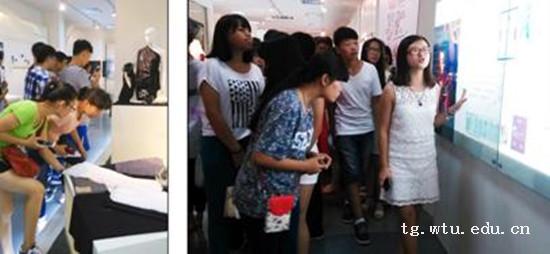 工作室及相关教学设施)、纺织科技馆等学习场所及学校标志建筑,各讲解员详细介绍学校各个教学楼分布情况,也通过参观科技馆使学生们更加深刻的了解到我院纺织科技发展的历程。