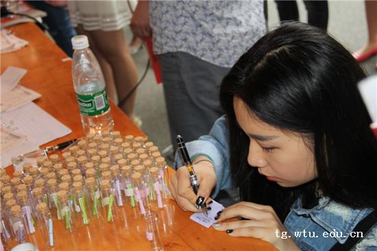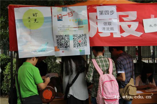 的2014级新生,学院分团委学生会在迎新点设置了“时光漂流瓶”,让新生们写下大学的学习愿望,历经四年磨练,待新生们毕业时再返送至他们手中,让同学们对比自身,不忘初心,重新审视最初的自己。