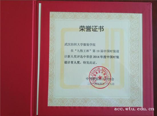 大四学生邓卿荣获第19届中国时装设计“新人奖”称号;学院也连续第十五年荣获中国服装设计“育人奖”; “点.触——毕业生服装设计作品”完美亮相2014中国大学生时装周,展示了430余名毕业生的设计作品近1800套;学生参赛能力不断提升,在第二届溢达创意大赛中取得佳绩,向社会展示出学院人才培养的丰硕成果。同时,教师黄李勇荣膺“中国纺织服装行业年度精锐榜—十大新锐名师”;学院与美国、日本等国际服装院校开展了全方位的国际学术交流与教学合作;精心打造“纺大时尚地标”,营造了“美在纺大”的校园文化氛围,学院在国际合作、科研、校园文化建设等各方面都不断深化内涵建设,取得了显著的成绩。