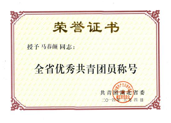 广告设计与表演班学生马春颜获称我校唯一一位“湖北省优秀共青团员”