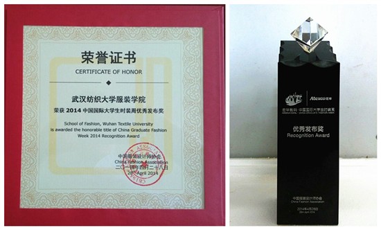 这五项大奖分别为中国国际大学生时装周优秀发布奖、人才培养成果奖;由中国服装设计师协会组织评选产生的2014年度中国时装设计“育人奖”、“优秀指导教师奖”以及第19届中国时装设计“新人奖”。