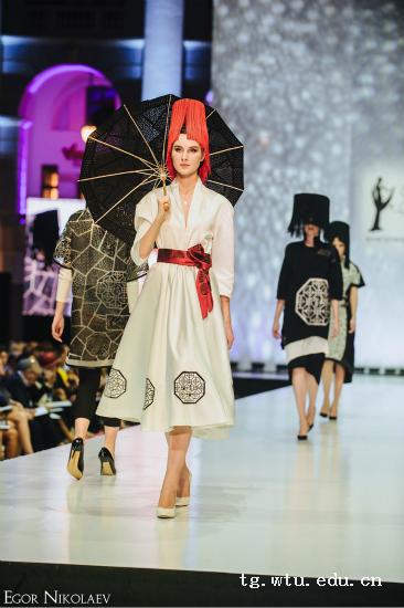 近日,国际青年服装设计大赛“俄罗斯剪影”在莫斯科俄罗斯红场和克林姆林宫附近举行。我院大四学子彭萍萍和她的系列服装《Frozen Morning》被俄罗斯设计家协会授予“最受尊敬奖”。(此大赛不分金银铜,一共只有7个大奖,分别颁给各方面表现最佳者)