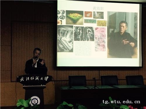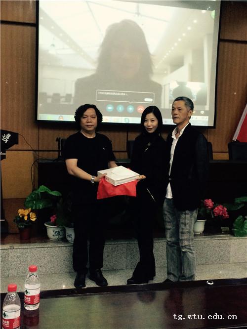 下午2:30,南湖校区T201报告厅座无虚席。首先,熊院长致辞欢迎赵倩女士与黄致阳先生一行,向来宾介绍了学校及学院的办学特色与所取得的成绩,并对本次活动进行了简单介绍。赵倩女士也对学校及学院组织本次活动表示感谢,同时,向大家传递了本次活动的精神内涵与意义。随后,身在法国的高级女装设计师Barbara Bui女士与现场的师生进行了跨洋视频连线互动,由赵倩女士担任现场的法语翻译。针对我心中的艺术这一主题,在场的大一新生踊跃提问,与大师分享自己对艺术的理解,聆听服装设计大咖眼中的服装艺术设计。随后,黄致阳先生为同学们带来了一场精彩的报告,他从自身的经历出发,回忆了自己当年在大学学习艺术的往事,与大家分享他作为一名当代艺术家曾经受到的艺术影响及其自己的艺术生涯,同时,黄先生还运用当代艺术家敏感而独特的思想来阐释艺术的变革及未来的趋势。
