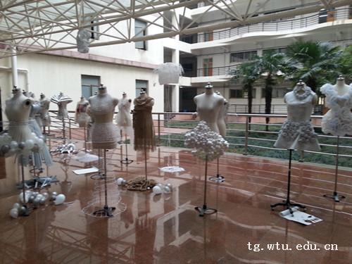 一楼展厅相继展出了服装卖场陈列设计作品和以“白”为主题的非纺织原料服装作品。