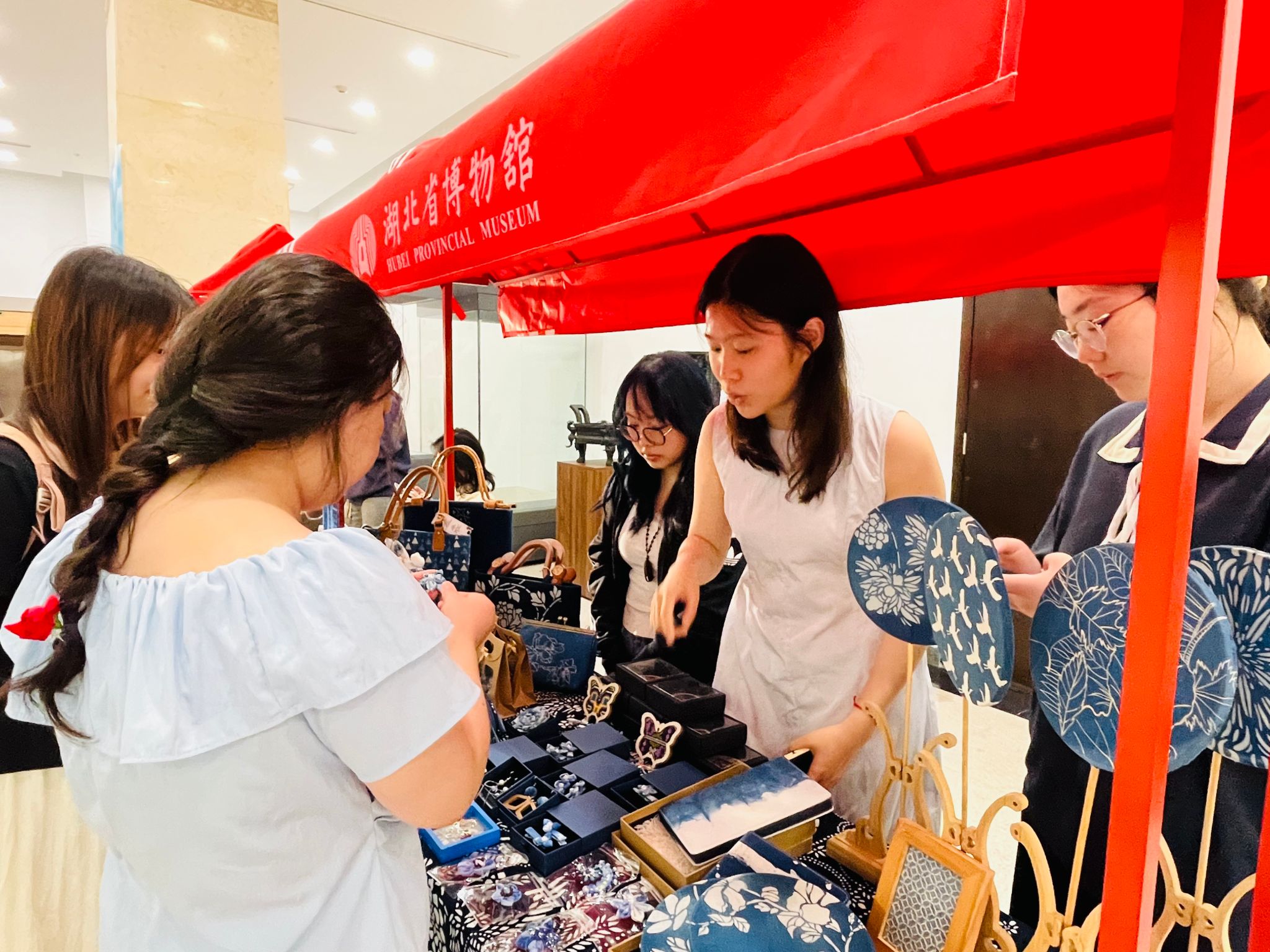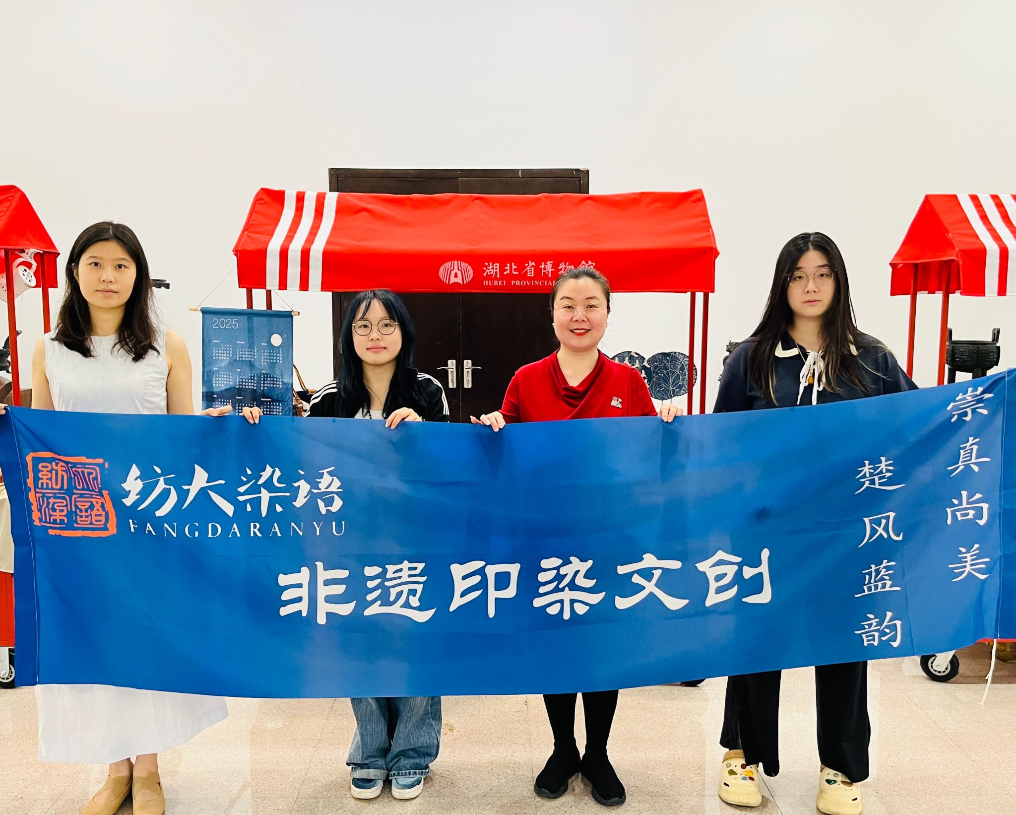 由王妮副教授指导的研究生非遗创业公司的“纺大染语非遗印染文创品牌”产品首批入选。此次活动是由湖北省人力资源和社会保障厅、湖北省文化和旅游厅(湖北省文物局)主办,湖北省博物馆和湖北省劳动就业服务中心承办。省就业中心旨在联合省博物馆共同搭建大学生文化创意产业创业项目孵化平台,为在校大学生、研究生及毕业五年内的高校毕业生在省博物馆提供6个产品展示销售区(花车),供参与文创项目用于样品试销与产品市场测试,这也是首次遴选省内高校知名度和影响力的文创品牌项目,旨在为积极推动创新创业及就业的高质量发展。