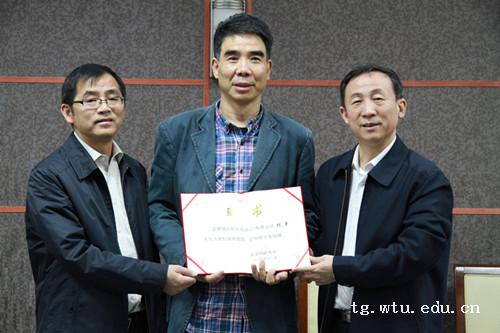 座谈会上,姜校长介绍了我校产学研一体化的校园规划,并请林平一行观看了《武汉光谷F027国际时尚创意园》和《蚕》两部宣传片。尚书记和姜校长为林平颁发了聘书,聘请他担任我校的客座教授和企业硕士生导师。