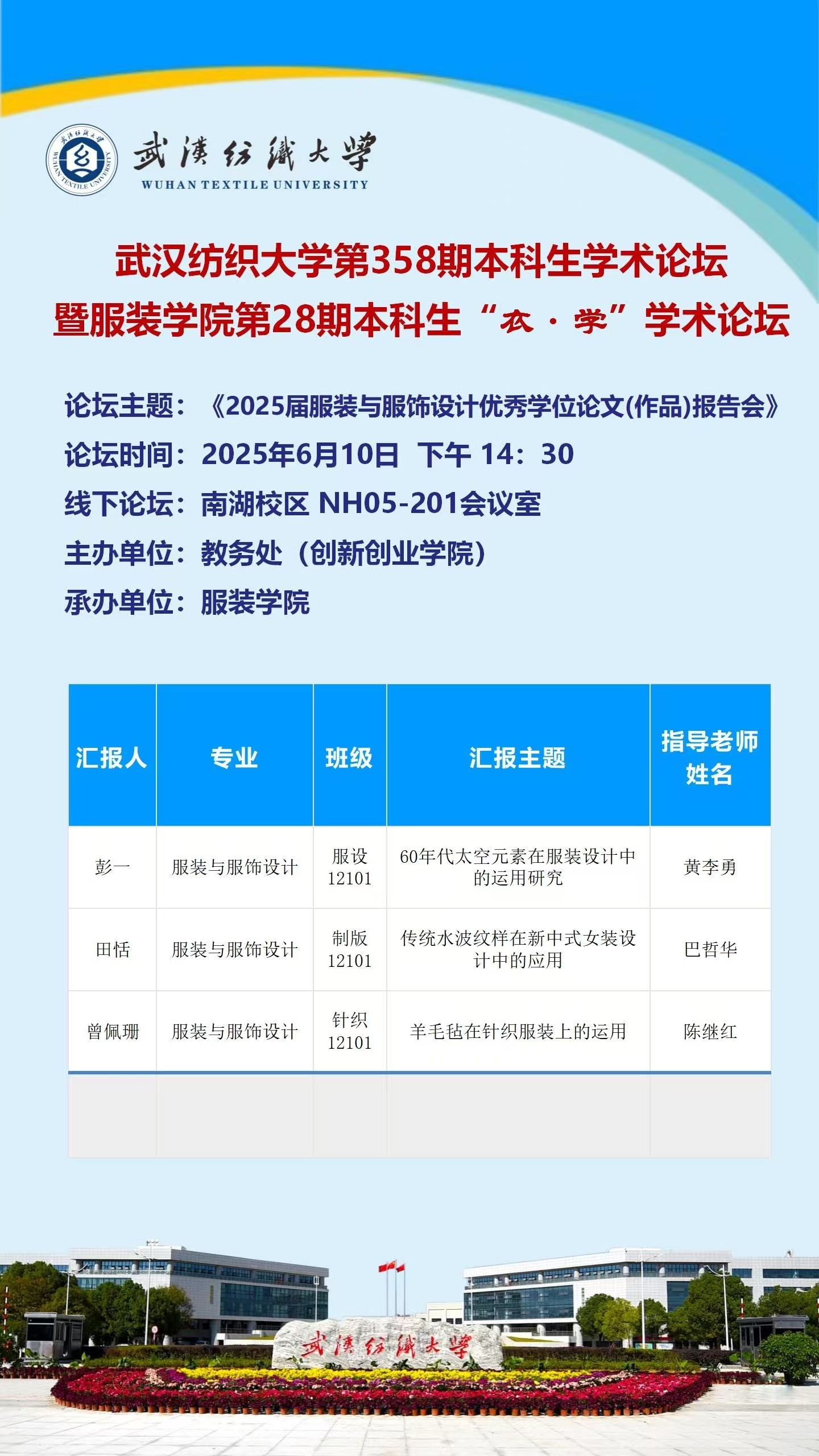 论坛最后,点评嘉宾冯玲玲教授分别为参与此次分享的优秀学生颁发了荣誉证书并合影留念。通过“衣·学”论坛,服装专业的本科生拥有了一个宝贵的交流与成长平台。学子们在此展示优秀设计、交流前沿创意、分享宝贵经验。论坛有效促进了创新思维的启发与实践经验的总结,为构建良好学术生态贡献力量,并持续拓展着参与者的学术视野,提升其专业素养,创造更多互动学习的机会。