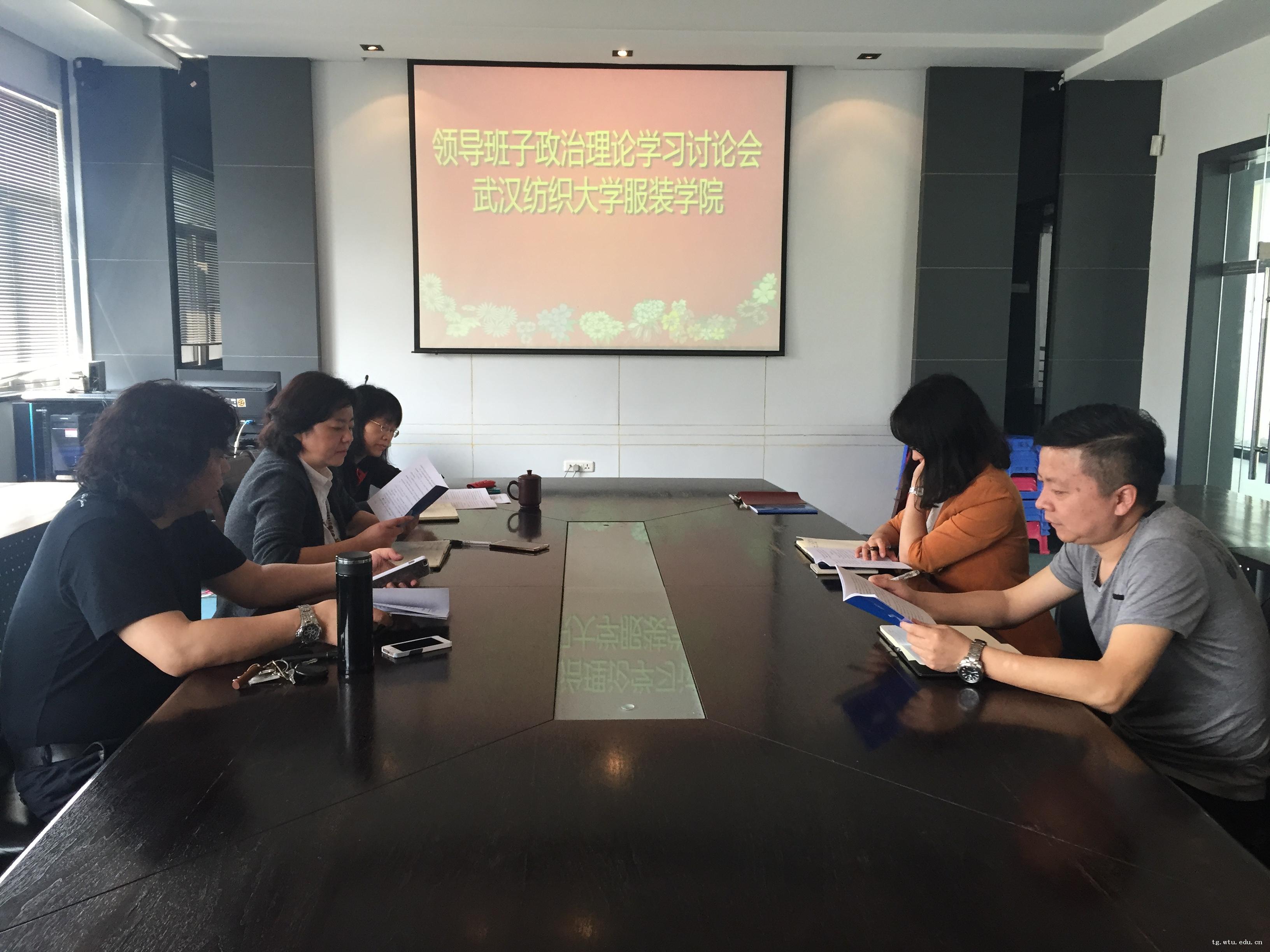 院长熊兆飞、分党委书记陈桂枝、副院长陶辉、袁大鹏和副书记遆亚荣在综合楼三楼会议室集体学习《百合小说