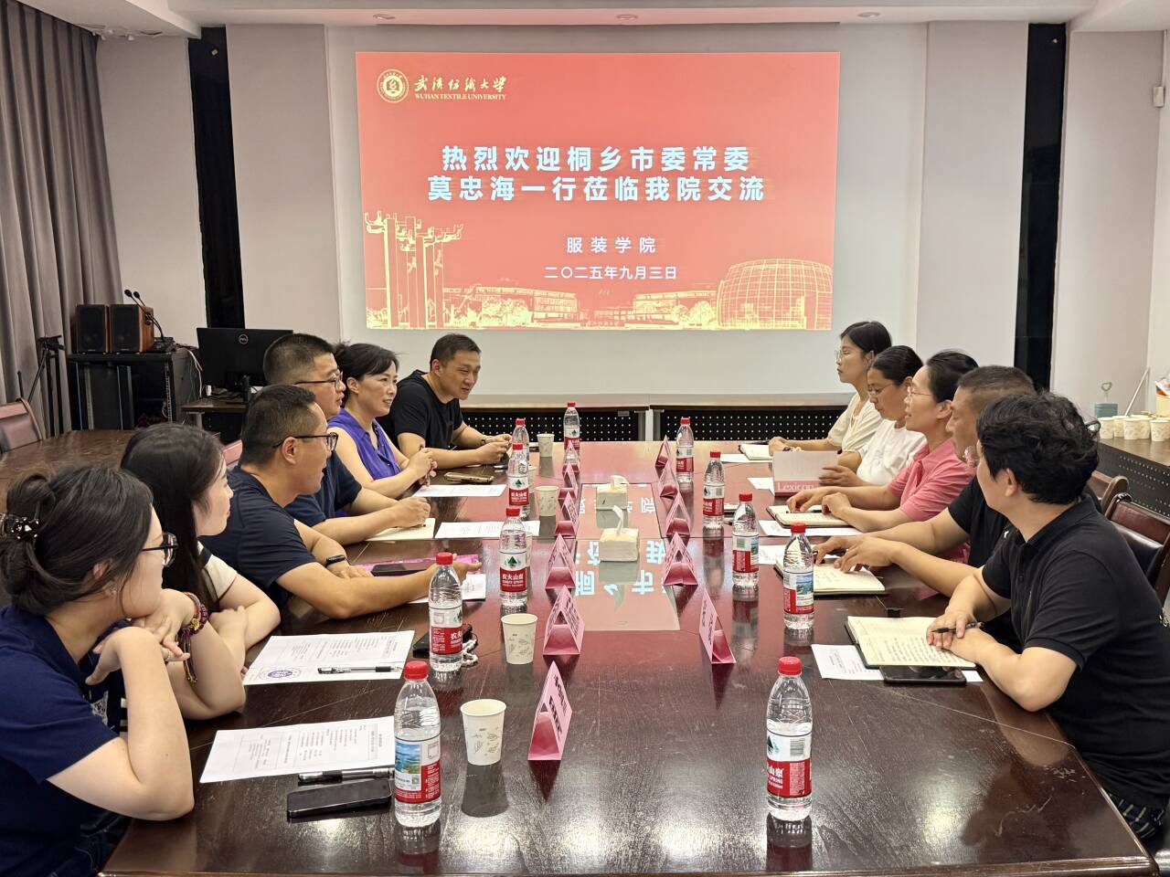 的专业设置、人才培养模式与桐乡市尤其是濮院镇的产业发展方向高度一致。他详细介绍了濮院作为全国重要的针织服装产业聚集地的发展现状与特色资源,强调濮院不仅是产业重镇,更致力于打造“时尚古镇”,亟需高校在创意设计、人才输送、技术研发等方面的支持。莫忠海表示,希望以此次交流为契机,推动双方建立常态化的合作体系,进一步拓展校企合作的广度与深度,共同助力濮院时尚产业实现更高层次发展。