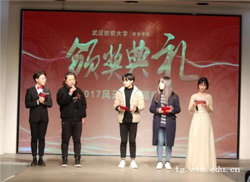 风云学子颁奖盛典暨优秀学生表彰大会在南湖校区表演厅隆重举行,表扬和鼓励那些在过去的一年里表现非常优秀的个人和集体,选树优秀学生榜样,引领服装学子积极向上的精神风貌。院长熊兆飞、党委书记陈桂枝、副院长袁大鹏、党委副书记遆亚荣、工会主席江学为、院办主任易卉、实验室主任吴胡和以及各年级辅导员老师出席颁奖盛典并为获奖者颁奖。熊院长、陈书记还寄语获奖学子,鼓励大家继续努力、再接再砺、争当优秀,为广大同学树立标杆。服工11601班李涛、中日11601班尹贝贝主持表彰大会。