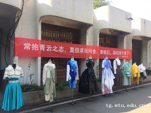 与动态的LED屏展示形成鲜明对比的是由历年优秀毕业设计作品组成的人台服装静态展示,直观地为新生与家长们展示现实中的时装,增加了新生对专业学习的清晰感受,将时装的艺术设计属性与生活属性有机融合,深刻诠释了艺术来源于生活,而又高于生活。
