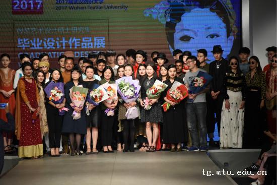 的研究生导师、留学生导师等出席了本次作品展,同时武汉其他高校的留学生们也慕名前来观摩了此次毕业展。本次作品展上,共50位设计师超过200套优秀设计作品惊艳亮相,其中来自巴基斯坦、孟加拉国两个国家的12位留学生以跨文化的视野与中国的学生共同演绎了一场精彩纷呈的时装秀。