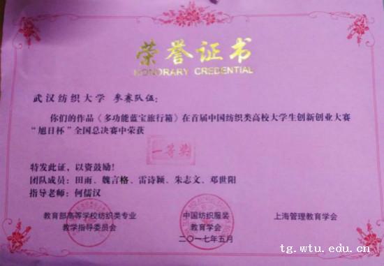 5月13日,由教育部高等学校纺织类专业教学指导委员会、中国纺织服装教育学会、上海管理教育学会联合主办,东华大学旭日工商管理学院承办的首届中国纺织类高校大学生创新创业大赛“旭日杯”全国总决赛在东华大学圆满落幕。我院魏言格、朱志文等同学参与的项目获一等奖。