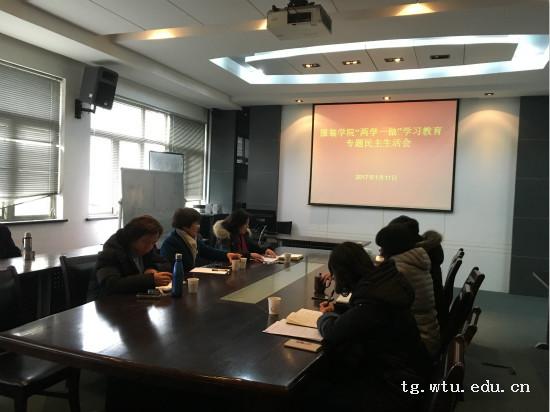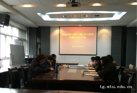 领导班子在南湖校区综合楼三楼会议室召开了“两学一做”学习教育专题民主生活会。学院领导班子和学院各教工党支部书记参加了本次会议,副校长黄运平到会指导,会议由学院党委书记陈桂枝主持。