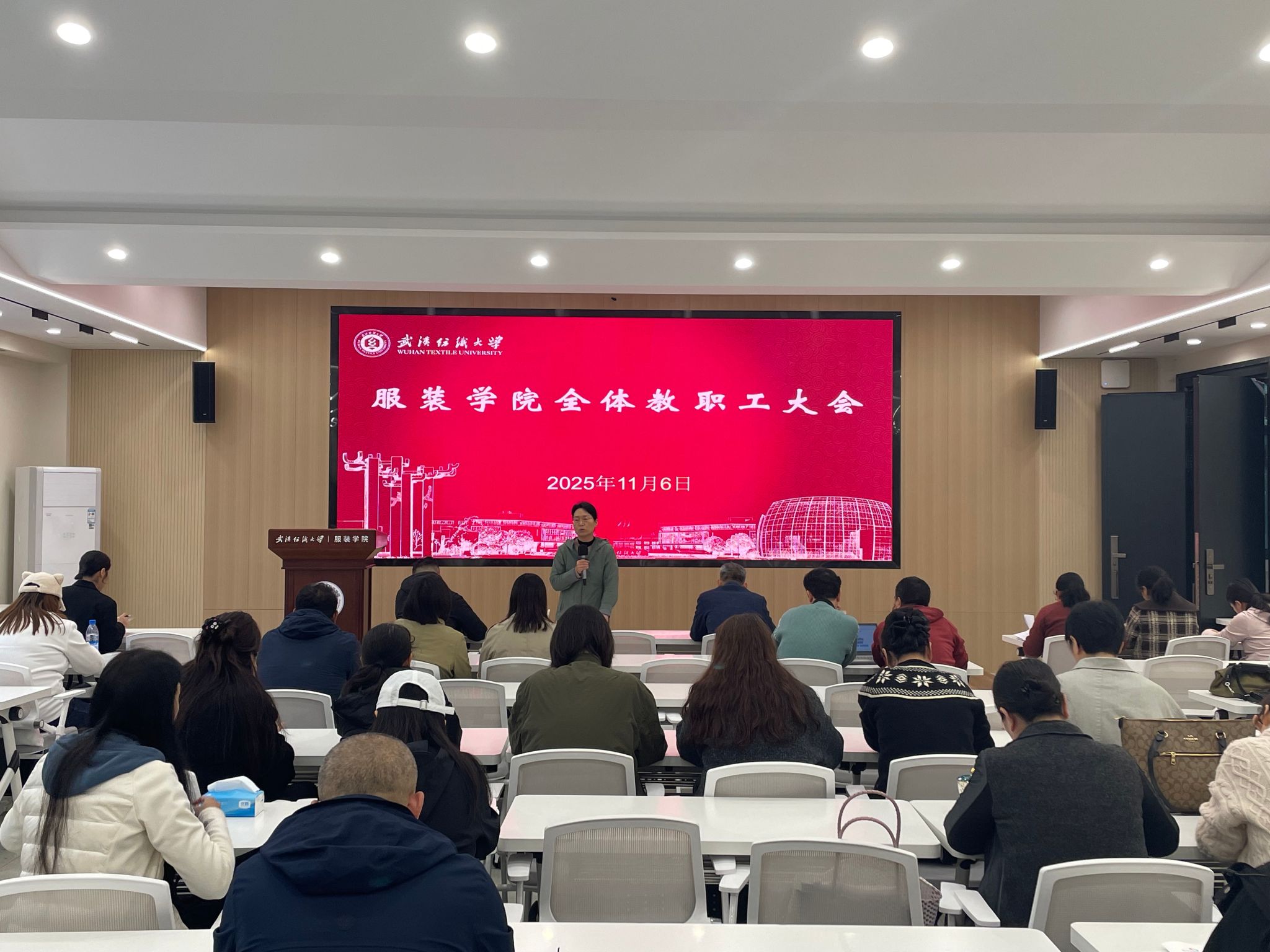 院长陶辉全面通报了学校及学院下一步重点工作安排。她首先传达了学校近期会议精神,介绍了学校 "双一流" 建设的最新部署与发展要求,强调全院教职工要主动对接学校发展战略,立足岗位建功立业。针对第三届时尚与可持续发展国际会议,陶院长总结了会议取得的实际效益与广泛影响力,指出要以此次会议为契机,深化国际交流合作,拓展办学资源。在职称评审与教学成果奖申报工作上,她要求严格按照评审标准与程序推进,确保公平公正公开,同时鼓励符合条件的教师积极申报,充分展现学院教学科研成果。陶院长还通报了近期研究生报名情况,分析了当前就业形势,并着重强调,就业质量不仅是人才培养成效的重要体现,更是研究生培养评估与博士点验收的关键检查内容,要求全体教师高度重视毕业生就业指导工作,助力学生实现高质量就业。此外,她还对学院 "十五五" 规划编制工作进行了部署,鼓励全院教职工积极建言献策,共同描绘学院未来发展蓝图。