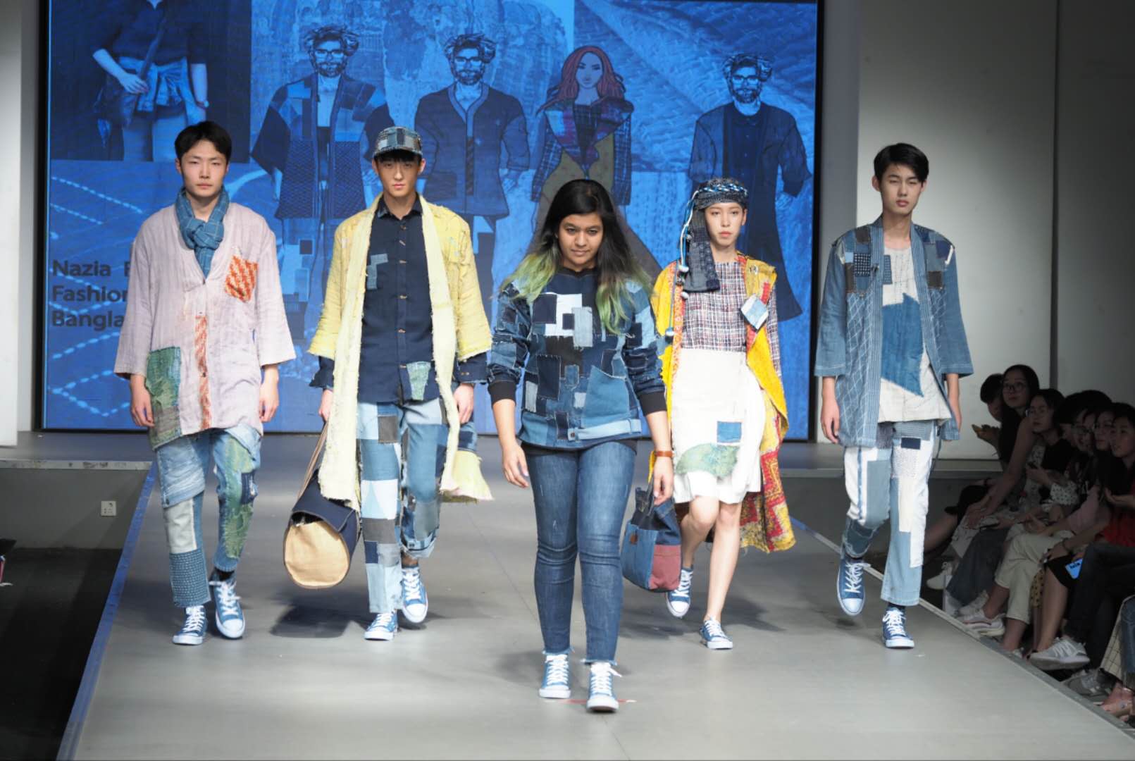 如来自巴基斯坦的几位同学分别将巴基斯坦传统的刺绣和装饰元素应用到现代高级时装、利用巴基斯坦的建筑造型--钟楼与武汉黄鹤楼图案元素对库尔塔服装进行创新设计以及将巴基斯坦卡车艺术图案创新应用女装设计中,表达出南亚流行艺术与服装设计的融合,展现文化复兴的新时尚等。来自孟加拉国的同学将孟加拉传统工艺与甘茶织物结合设计出不同风格的休闲成衣,将不同的传统和文化融合到现代时尚中,利用传统的坎塔刺绣工艺和图案以及博罗等手工艺技术将旧服装重新设计,以减少服装浪费,倡导零浪费可持续的时尚方式等。还有同学利用珠宝装饰和卡达布创新设计女性办公服;将环保材料与当今时尚界独特的传统和历史手工作品相结合重塑黄麻面料在服装设计中的应用;将激光切割技术应用到前卫服装设计中,创新设计出不同造型的前卫服装;利用手工制作三维纹理(金属、墙壁和土地等)面料并创新应用到女装设计中,赋予作品视觉的美感等。