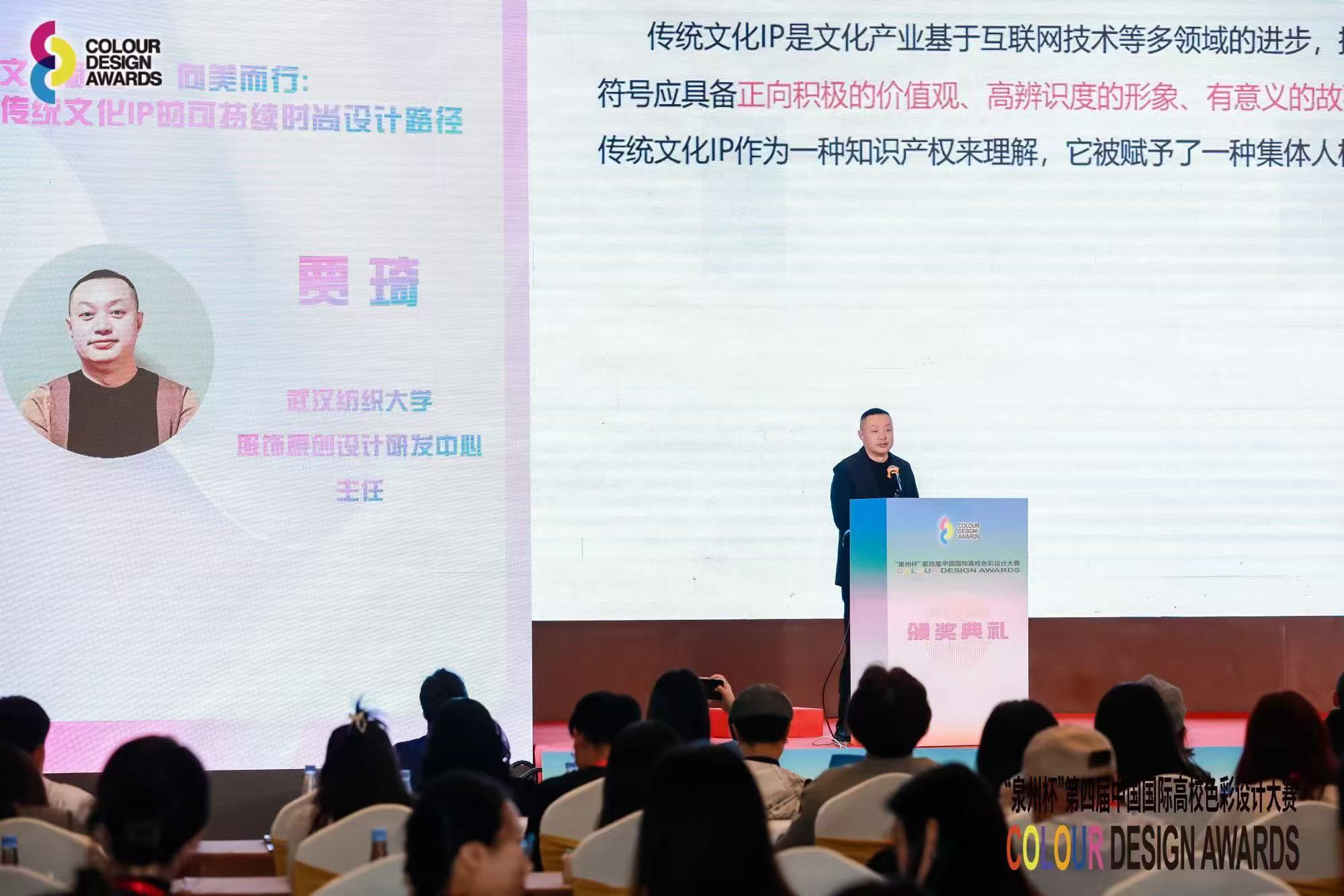 贾琦教授在现场分享了《文化新生·向美而行——传统文化IP的可持续时尚设计路径》,他说以“文化新生”为核,融可持续设计与时尚表达,深挖传统IP精神内核是向美而行、构建文脉焕新的当代设计范式。