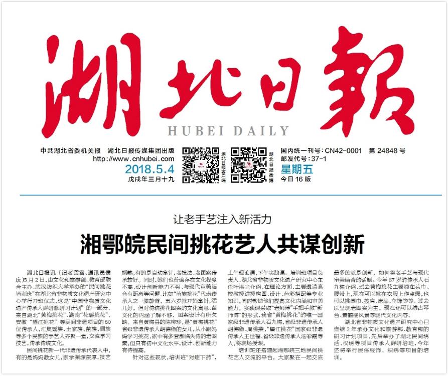 湖北省非物质文化遗产研究中心已连续3年承办文化和旅游部、教育部的研修研习计划项目,先后举办了湖北民间绣活、汉绣等项目传承人群研培班,今年还将举行民俗服饰、织绣等项目的培训。