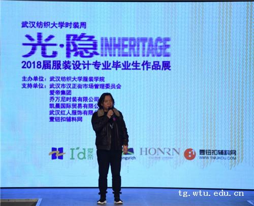 时装周暨2018届服装与服饰设计专业毕业生毕业设计作品展在我校南湖校区表演厅正式拉开帷幕。校团委书记段薇静、教务处副处长张家胜、武汉市硚口区政协副主席郭建敏女士、区委办公室副主任罗俊先生、壹钮扣辅料网董事长雷志雄先生、武汉红人服饰有限公司董事长助理熊燕女士应邀出席开幕式。出席开幕式的还有百合小说