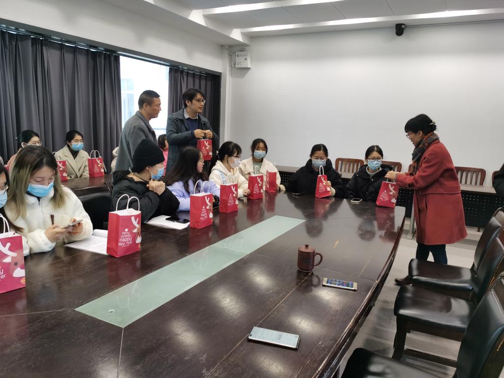 首先,学院全体领导班子依次给2018级考研学生发微信群红包,活跃现场气氛,缓解同学们紧张的心情。还给同学们分发了学院精心准备的慰问品,有寓意“考研成功”的橙子、“牛气冲天”的牛奶和“金榜题名”的棒棒糖。