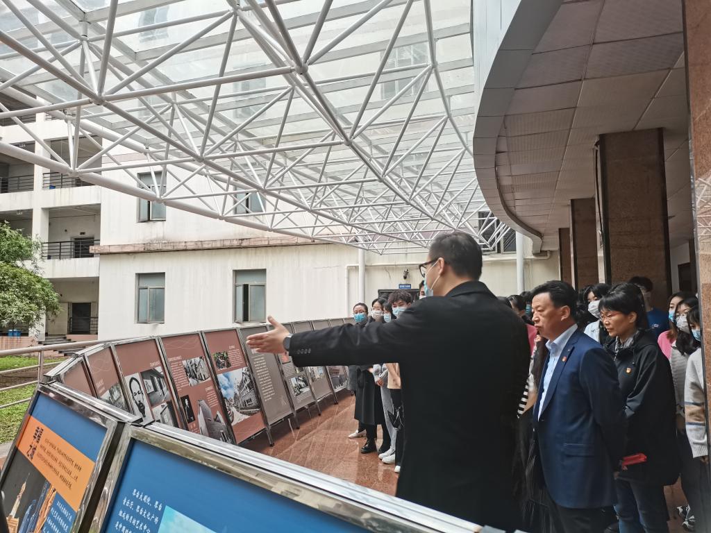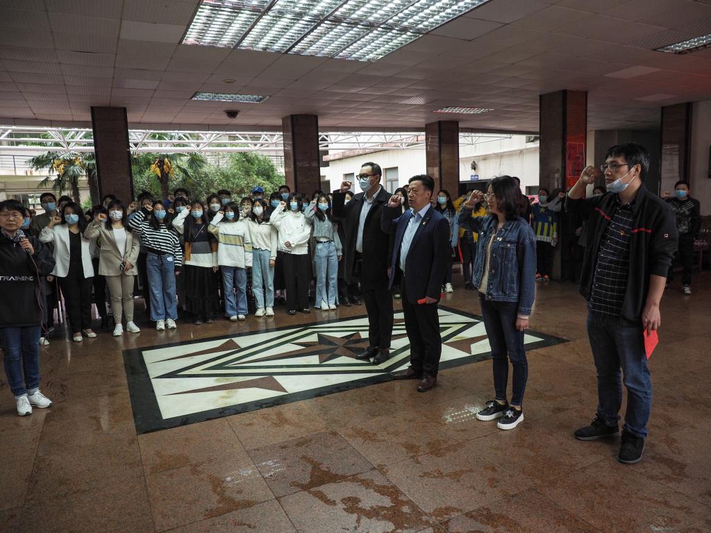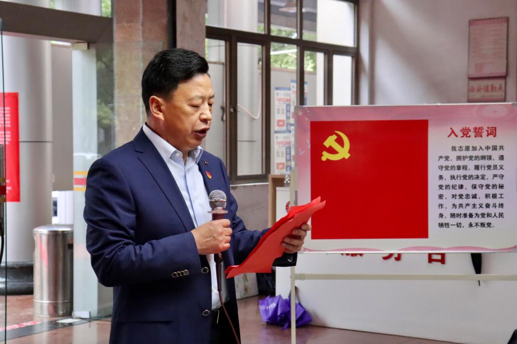 院长陶辉带领大家重温入党誓词;随后程碧海书记现场讲授微党课并宣布红色展览正式开幕,他强调,广大师生要更加自觉地传承红色基因,更加坚定跟党走的信念;党员干部尤其是青年学生要深入学习党的历史,深刻理解党的宗旨,把“明理”、“增信”、“崇德”、“力行”作为必然目标取向;青年大学生需以史为鉴,坚持学党史,始终在党的领导下,听指挥、勇拼搏、见行动,不断学好党史这门成长“必修课”,添补人格精神之“钙”,增补人生思想之“魂”。仪式最后由辛亥革命博物馆社教处马光明讲解员为大家对本次红色展览进行专业讲解。