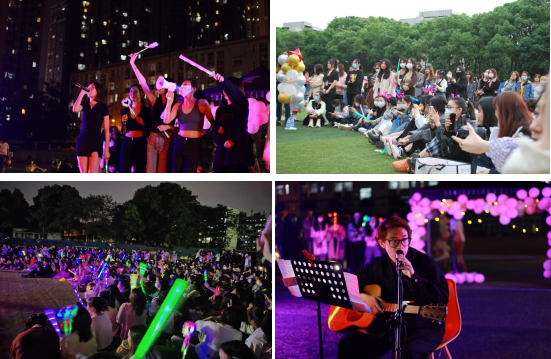 院长陶辉倾情演唱《这世界那么多人》将气氛带到高潮。活动还设计了点唱、听歌识曲等趣味互动环节,同学们兴致高昂,现场气氛热烈。阳光、草坪、荧光棒、音乐、舞蹈,一个个美好元素汇聚成节日里最幸福瞬间。