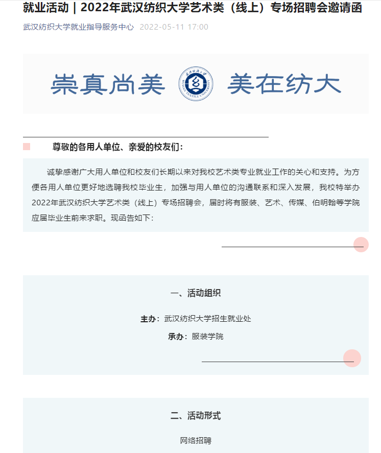 本次艺术类(线上)专场招聘会共有24家纺织服装企业参加,是学院大力推进“访企拓岗”行动的一项重要活动,通过搭建平台,畅通校企交流渠道,为企业和学生提供更精准服务,旨在为毕业生增加就业渠道,开拓就业岗位。接下来,学院将落实“包保行动”,建立三级联动工作体系,进一步做细做实就业工作,以“百日冲刺”状态全力做好高校毕业生就业工作,促进毕业生更高质量就业。