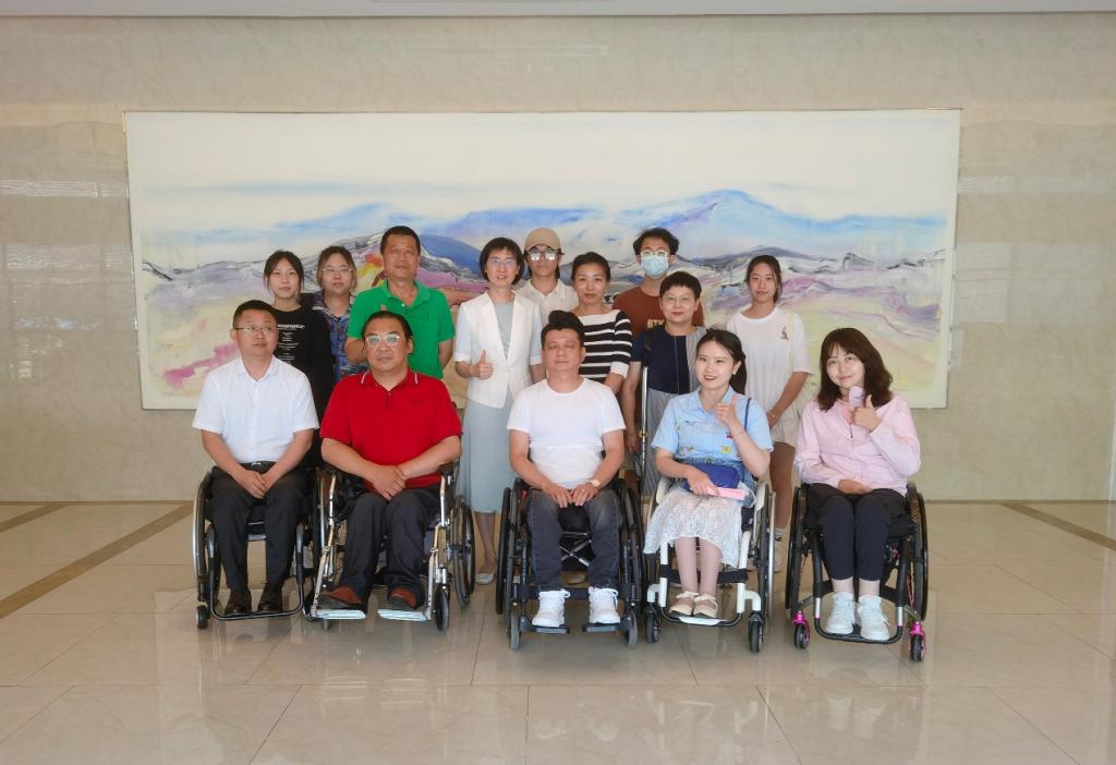 訚珺教授带领无障碍时尚设计研究团队中的五名本科生前往武汉市残疾人艺术馆,与市残联党组书记、理事长李红敬、市肢残人协会副主席、书画家高标、市肢残协会副主席胡文兵等一行9名主要残疾人联合会成员干部展开有关“无障碍时尚设计”研究项目的座谈会。
