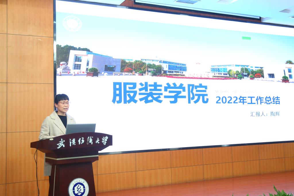 院长陶辉作2022年度学院工作报告。她从党建工作、人才工作、教育教学、科学研究、学生工作、招生就业、国际合作与交流和社会服务等八个方面工作对学院一年来取得的成绩和存在的不足进行了分析和总结,对2023年度的工作进行了展望和部署。