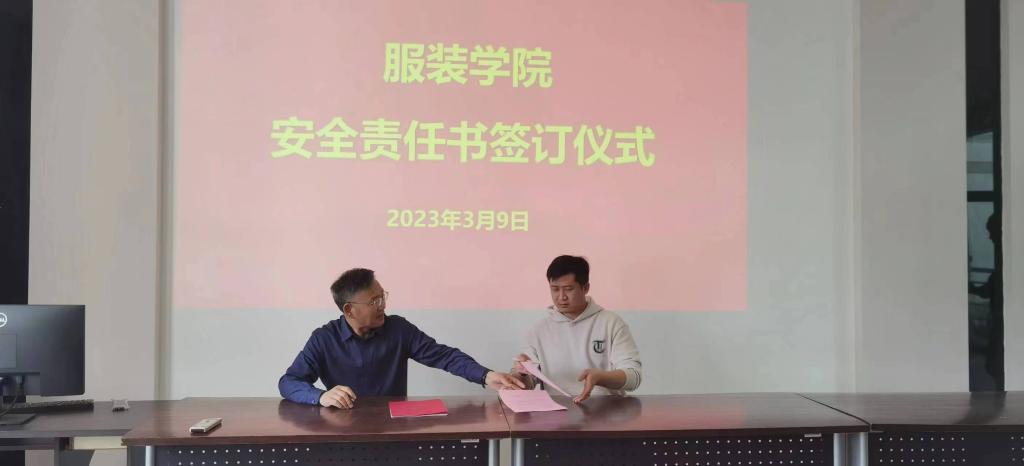 消防安全责任书》,通过安全责任书的签定,切实把服装学院消防安全责任落到实处,为学院的发展提供安全稳定育人环境。