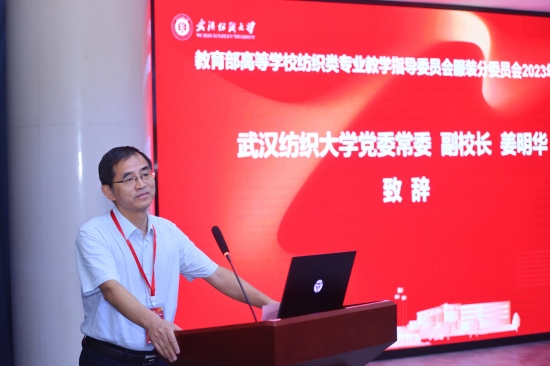副校长姜明华代表学校对参会的领导和专家表示热烈欢迎。他指出,教指委服装分委会在服装专业建设和人才培养中起到至关重要的作用,希望在大家的共同努力下,为服装专业的教育改革和创新,为行业培养优秀的人才提供指导和支持,为推动我国服装专业和服装行业的可持续发展做出积极贡献。同时,希望能够与各位同行建立更加紧密的联系,共同推动我国服装类专业的高质量发展。