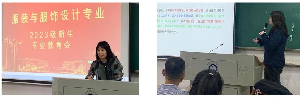 教学秘书张敏分别为大家介绍了服装专业的特色、解读了专业培养方案、介绍了学分制及选课机制,以帮助新生们更好地了解学院,并尽快融入到专业学习中。