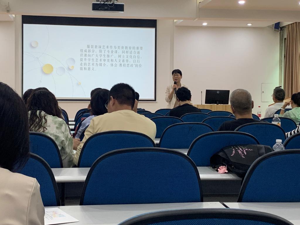 郭海燕副教授和吴忻舟博士分别作了《秀场内外——走进服装表演艺术》教学创新“教、演、创”融合、《服装舒适性与功能》功能性服装的教学观摩讲座。
