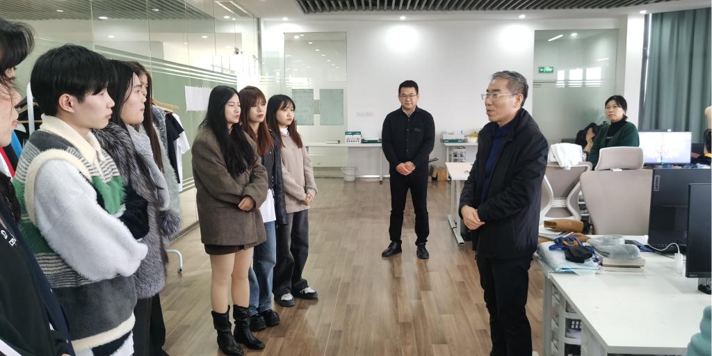共青城纺织服装产业研究院看望师生,并与师生们进行了亲切交谈。他说到,“我这次来看望大家,一是给大家打打气,老师们同学们长期驻扎在这里大家辛苦了。两年多来,研究院先后获评“江西省新型研发机构”和“九江市产业研究院”,并代表“共青羽绒服”参加“2023年中法时装周”活动。“研究院+产业园”运营模式得到了江西省、九江市各级领导的高度认可,中央电视台、江西电视台为此作为先进典型予以报道,江西省副省长、省纺织服装产业链链长孙洪山也到研究院专题调研,并充分肯定了研究院的产业定位及创新成果。二是对大家辛苦工作取得的成绩表示祝贺。同时希望大家今后的设计研究工作中要有更多的深度思考,不断结合市场提升设计创新能力和提升创新科技含量,为更好服务地方产业发展提供高质量支撑。”