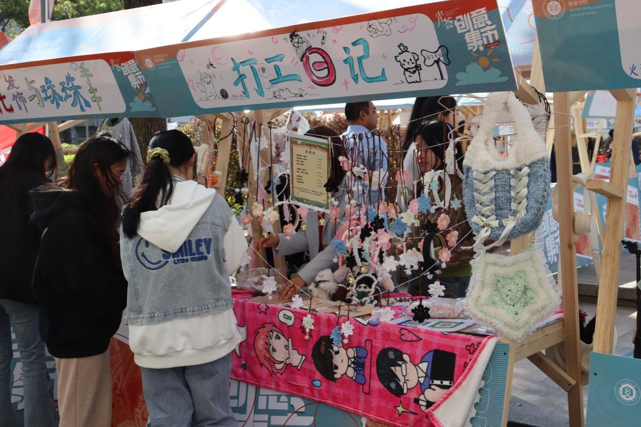 来自服设12305班的摊主郭诗晴表示,现在人工智能互联网的崛起,让手工店快速扩散,但是DIY的乐趣和个性化成品的魅力是无法被替代的。在DIY过程中,你可以根据自己的喜好和想法,打造出独一无二的物品,彰显个性和风格。