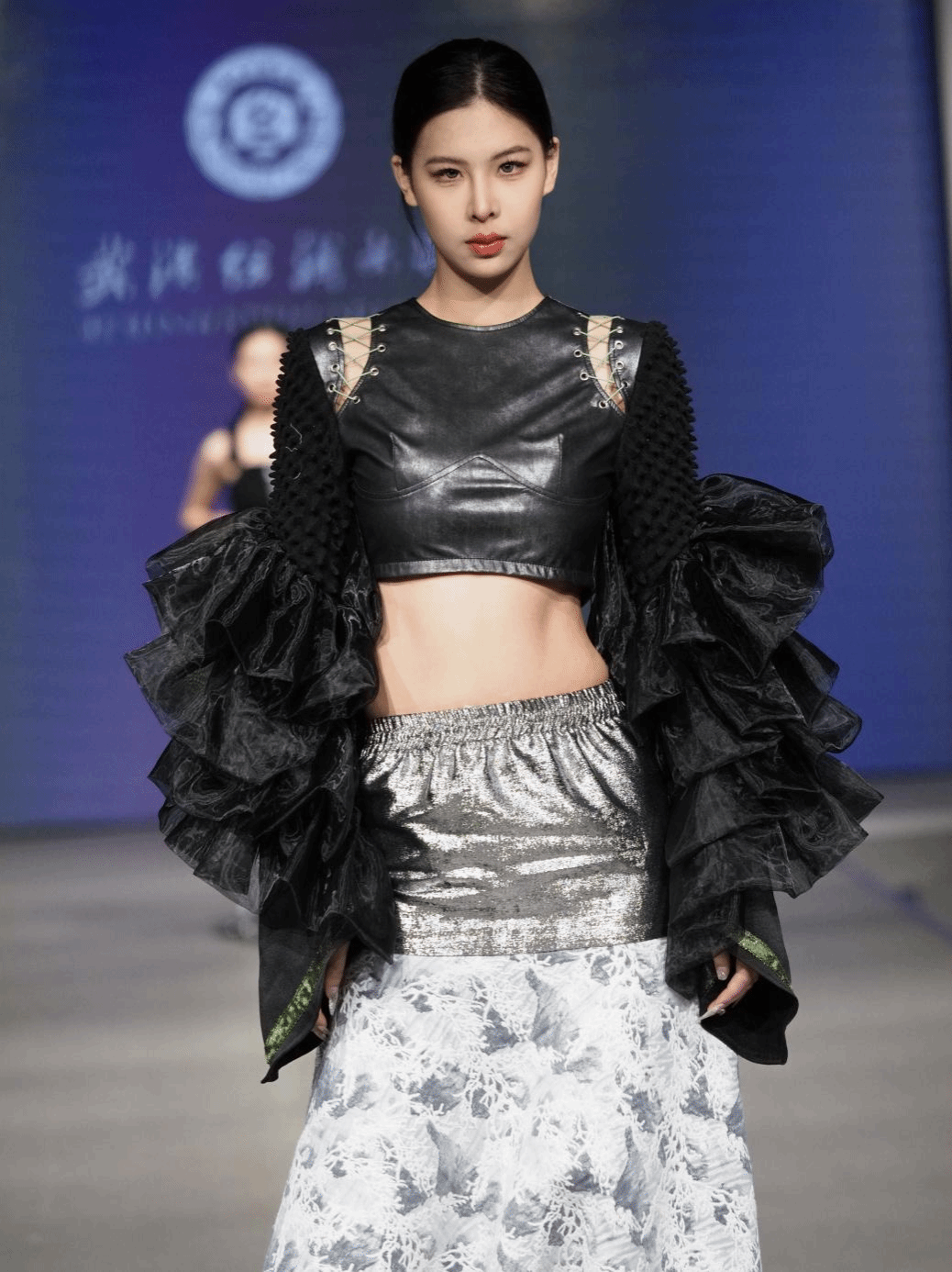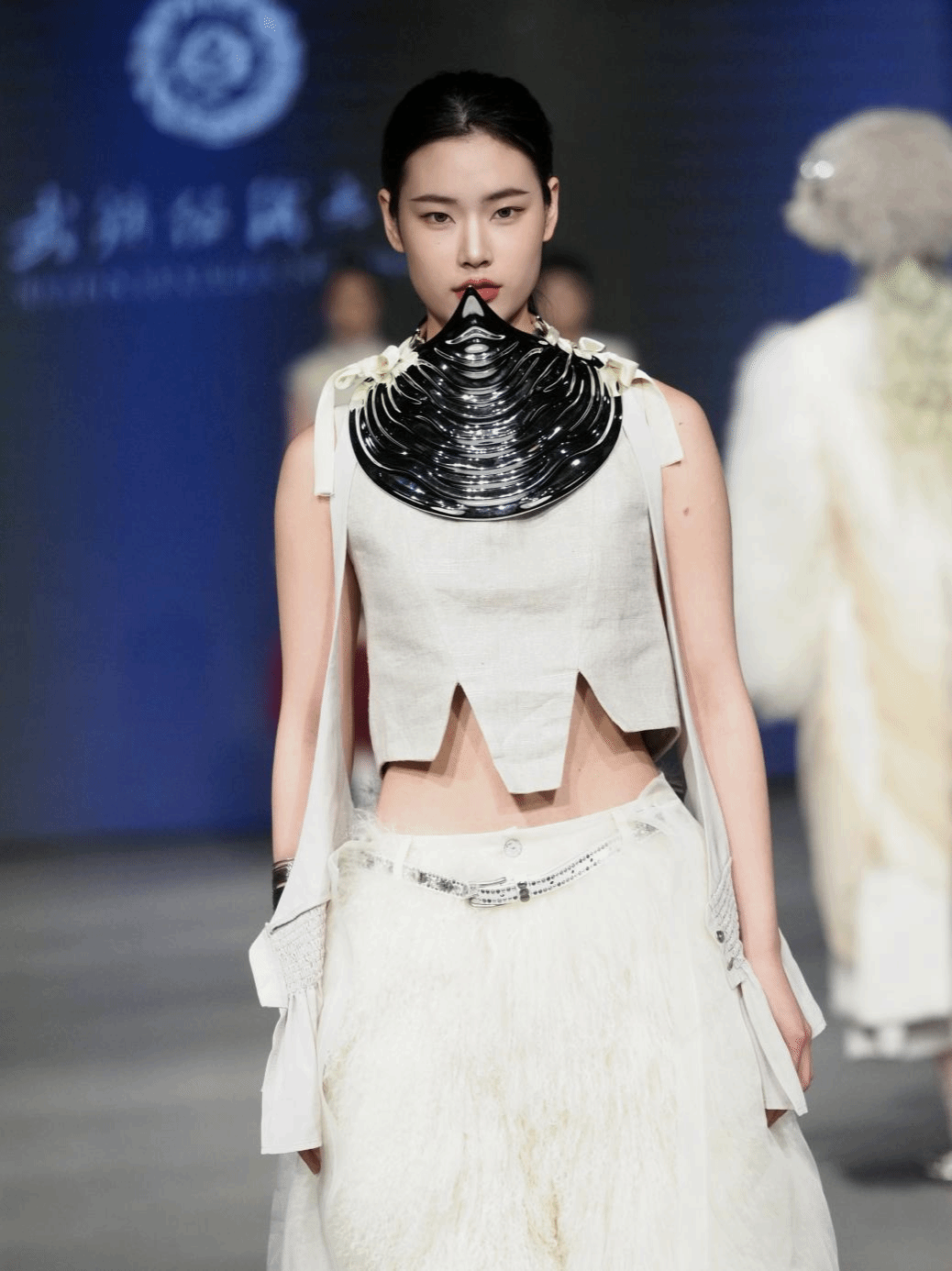 作为今年开幕式的首秀,由中日合作办学班级进行呈现,主题为“以光为序”,旨在以光为序,沐光而行。光是白日褪去的颜色,是黑夜闪耀的烟火。光是万物的尺度,它划定明暗,裁断昼夜,孕育出世界的绚丽多姿,推动着美的生长演化。设计师们通过感受生活之光,沐浴自然之光,将个人感悟与服装紧密结合,谈论世界,感受自我。
