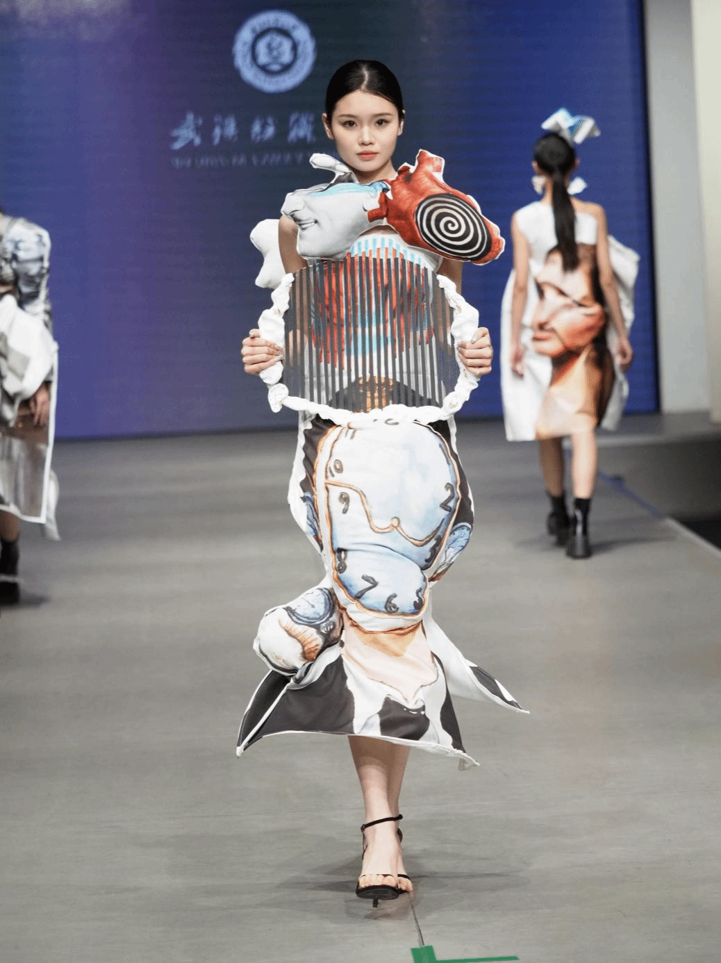 本次时装周上的服装设计,凸显了学生们在创新和实践方面的努力成果。结合原创性、市场需求和多元化设计理念,他们展示了传统文化与时尚融合、前沿科技与时尚创新、可持续发展与时尚环保等方面的作品。这些设计不仅展示了学生的创意和才华,也为时尚产业的实际发展提供了新的思路和可能性。