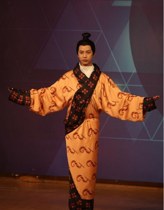 当时的中原文化普遍以高大为美,而楚人受中原地区礼仪约束较少。郭丰秋说,墨子·兼爱》中的“昔者楚灵王好士细腰,故灵王之臣,皆以一饭为节,胁息然后带,扶墙然后起”等语句,《登徒子好色赋》中对楚国美男子宋玉的评价,都反映了楚人追求“细长娴丽”审美趣味。从荆门沙洋严仓1号墓出土的漆画、长沙陈家大山楚墓出土的《人物龙凤帛画》等文物中的人物服装看,事实也是如此。郭丰秋在研究和复刻楚人服饰过程中,发现了楚人在服装设计和穿搭上的许多“小心机”——身体裹得越紧、袖子越宽大,显得人越瘦长;从严仓1号楚墓漆棺画上看,楚人走路都在摆pose走路时身体是S型,随时随地呈现灵动的曲线。