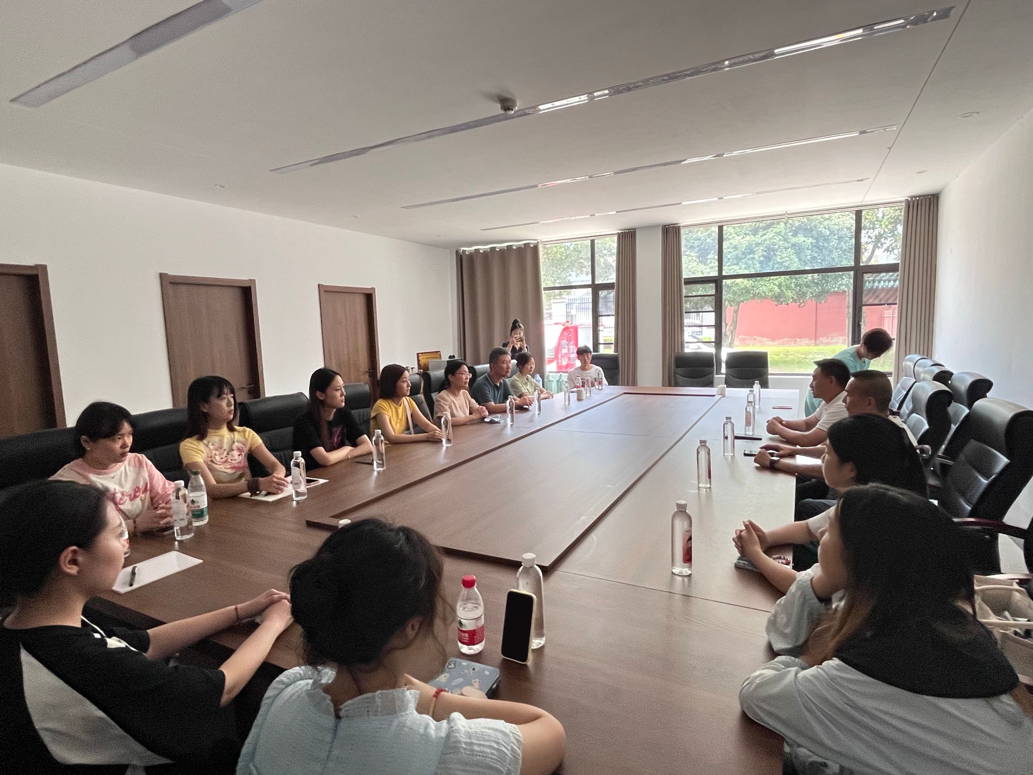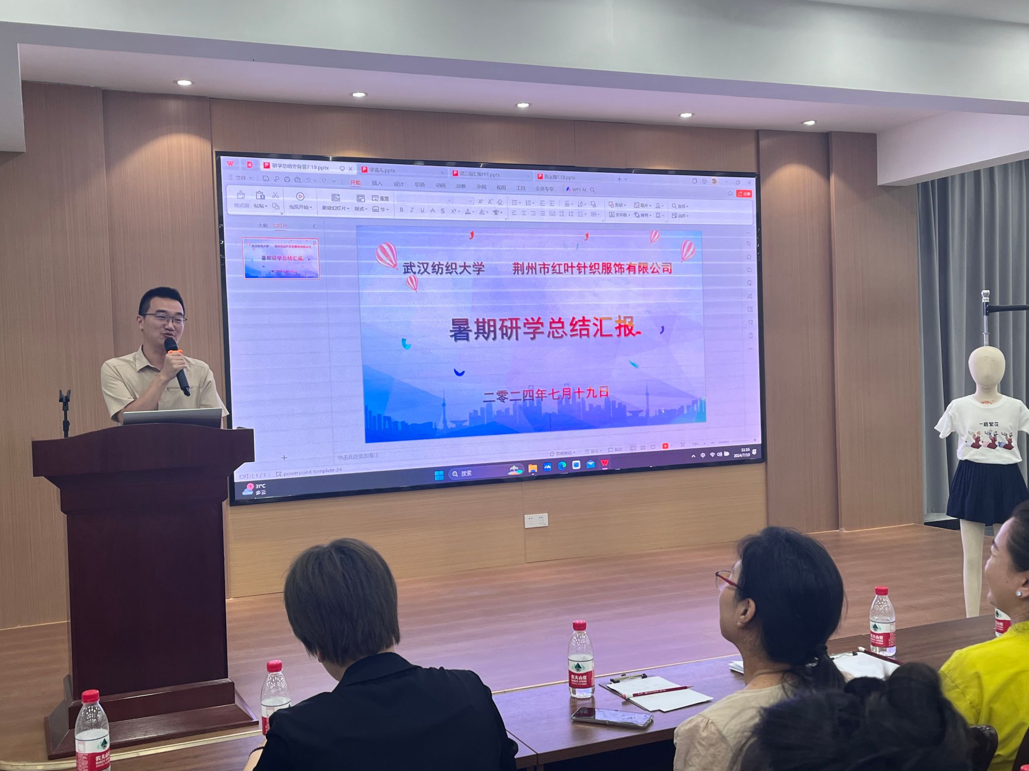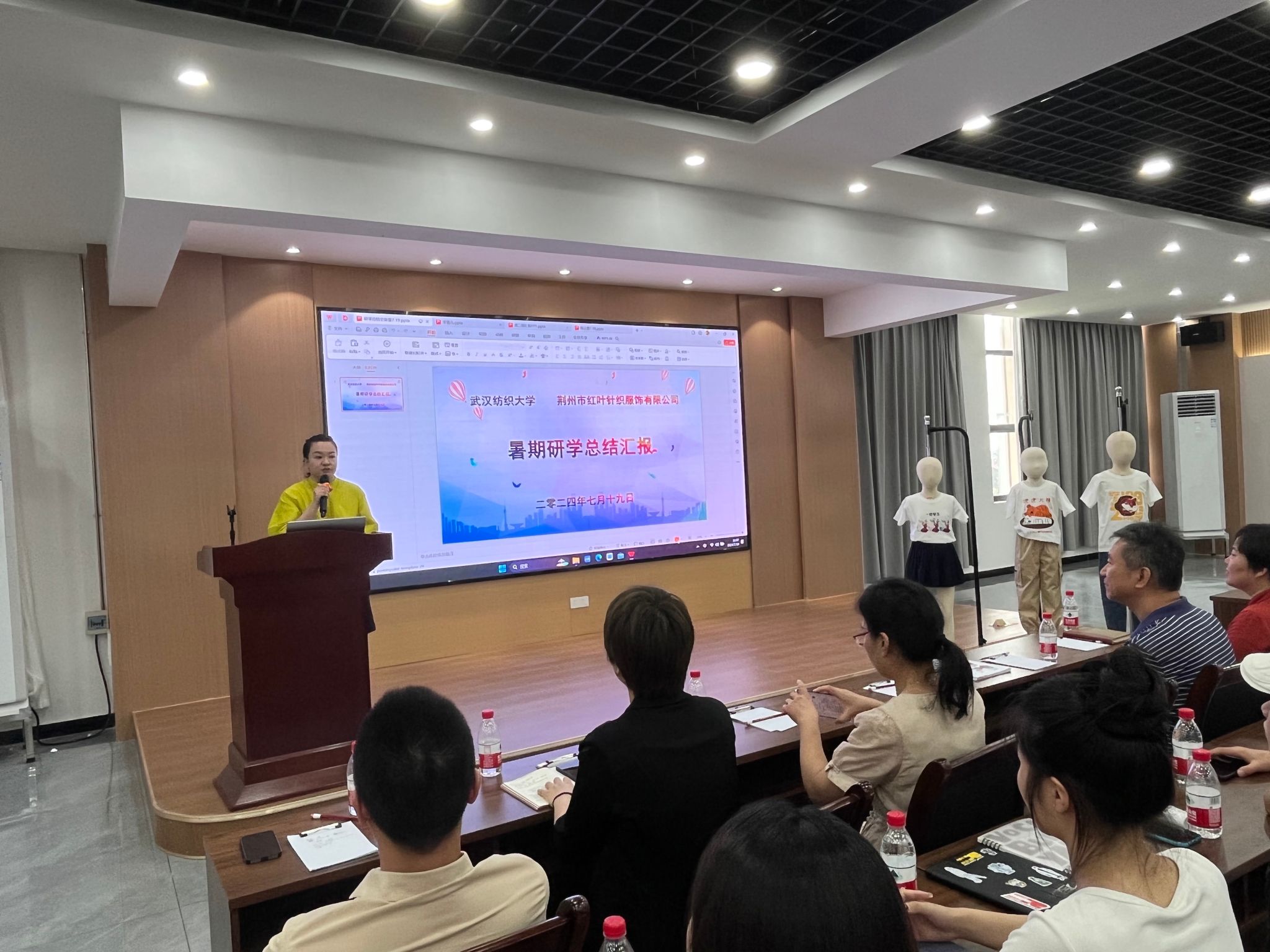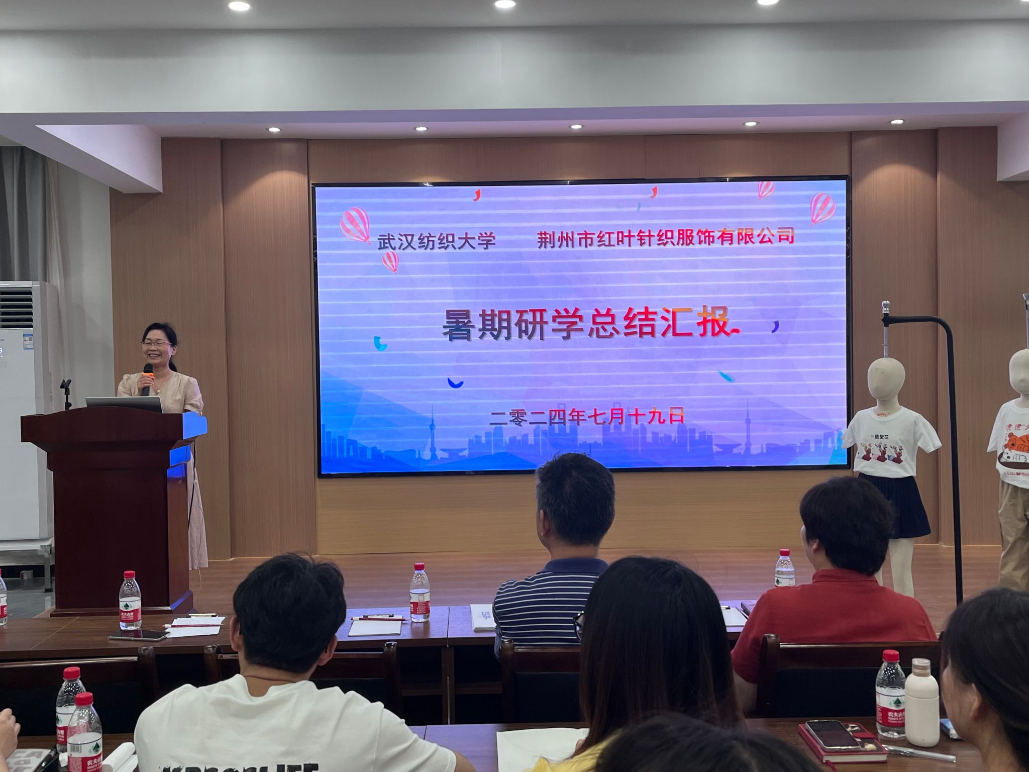 与荆州市红叶针织有限公司共同组织的暑期研学项目总结汇报会在荆州红叶会议室举行。岑河镇副镇长李鲲、总经理孟颖、设计部负责人吕晓梅、企划部负责人张伶俐、技术部负责人王红霞、百合小说