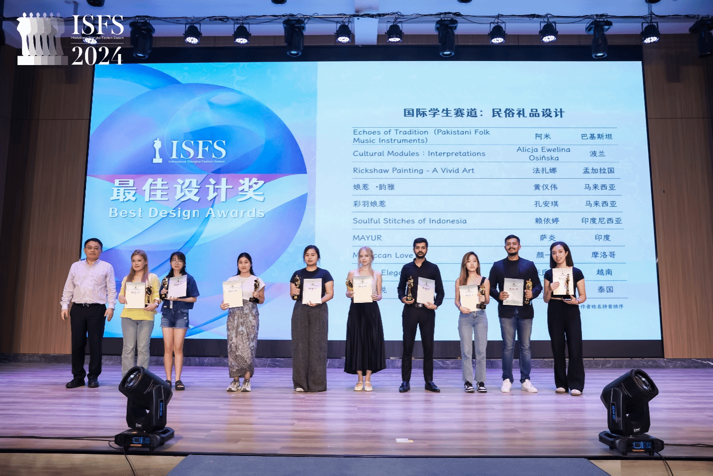 9月20日,“2024长三角国际上海时装周 ”期间举行了 “2024 ISFS Award 第二届国际民间礼品时尚创新大赛 ”颁奖仪式暨获奖作品展。本次比赛由东华大学主办,在上海市青浦区爱特梅尔文化创意产业园举行。此次大赛围绕“FUSI0N融·人与自然和谐共生” 为主题, 监督者中国高等教育学会外国留学生教育管理分会、中国民族博物馆, 和组织者上海市服饰学会、上海现代服务业发展研究基金会。