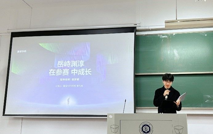 中日12201班李子涵进行了《“墨舞笔端,梦笔生花,心逐风雅”参赛获奖心得分享》汇报 ,在学术之路上,她曾多次参赛却屡屡陪跑,然而她没有放弃,她强调“每一次参赛都是一次学习与成长的机会,坚持参加比赛,不断积累经验,提升能力”,最终取得了专业奖项,也祝愿大家都能坚持参赛,追逐学术梦想。
