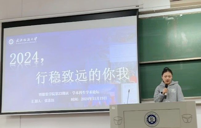 服设12203班张苏钰围绕《2024,行稳致远的你我》主题进行了汇报,通过介绍参加米兰设计周大赛备赛的过程和获奖作品的详细解析,向同学们展示了打磨一个好的大赛作品的经历,并着重讲解了三项A类赛事的竞赛规则与流程,详细讲述了如何准备竞赛以及如何获取竞赛信息,鼓励同学们勇于尝试。