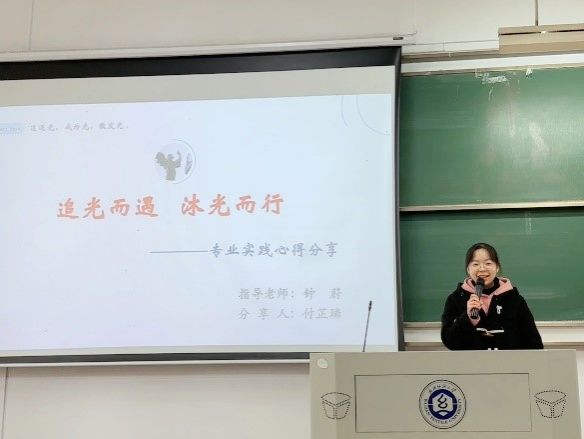 服设12101班付芷璘围绕《追光而遇,沐光而行——专业实践心得分享》主题,作为大赛正在备考研究生的她,通过总结自己大学四年来所参加各类学科竞赛与实践活动的心得经验,对低年级同学于专业学习、竞赛等各方面提出细致全面的各年段规划安排,鼓励大家积极参加各种专业实践和学科竞赛,树立远大的目标,并为之不懈努力,在一次次挑战自我的过程中不断地提升自己。
