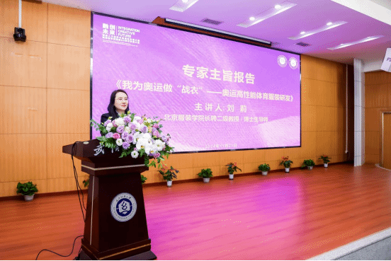 讲座以“我为奥运做‘战衣’”为主题,深入分析了奥运高性能体育服装的研发过程和技术创新。刘莉教授首先介绍了冰雪运动比赛服研究的四个大方向:“快、护、暖、美”,并分析了这些服装在竞速类项目、防护材料、耐低温保障以及技巧类项目中的应用。在 “快”的方面,利用跨尺度综合减阻技术,使减阻率提升百分之十,为运动员提升速度提供了有力保障。关于“护”方面,通过定制升级的护具和面料,为运动员提供了有效保护,并提高竞技表现。在“暖”的技术方面,采用了新型保暖填充材料,为运动员在寒冷环境中提供了持久的保暖。“美”体现在花样滑冰表演服上,通过综合考虑色彩体系、音乐风格等方面,设计了既符合表演风格又兼具科技感的比赛服。她认为在这些产品研发过程中,科研工作者的责任与担当非常重要。