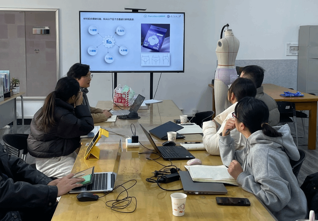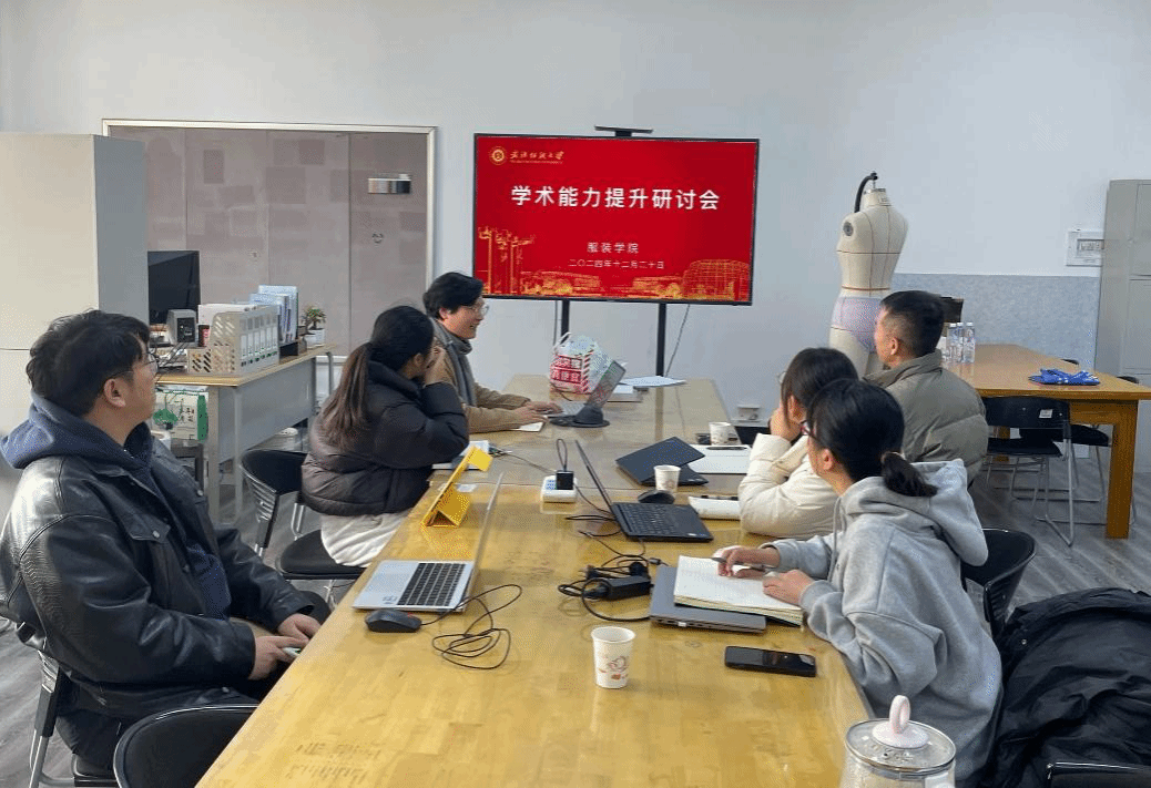 的青年教师张俊博士、陈晨博士和陆丽莎博士,以及部分研究生参与了此次讨论。大家围绕如何提升科研能力,尤其是在跨学科技术融合与产业化转化方面展开了热烈的讨论。张俊博士分享了学院在功能性服装产品开发方面的研究成果,与会人员对如何实现科研成果的产业化应用提出了许多具有建设性的意见与建议。