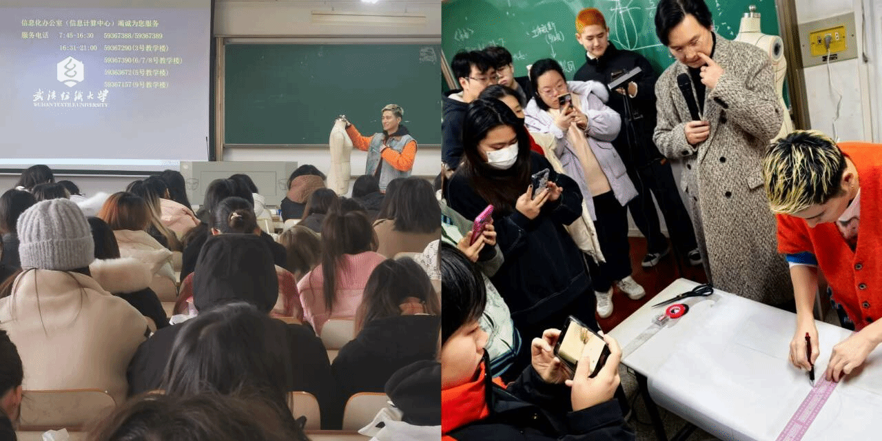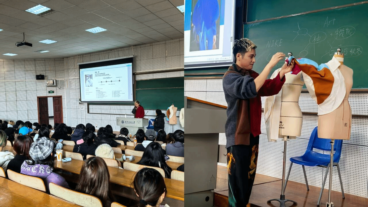 在授课过程中,森本慧老师于12月21日专门为阳光校区的24级全体大一新生作了关于“BUNKA FASHION COLLEGE THINK OF DESIGN”的专题讲座,为同学们的服装设计之旅做引路人。森本慧老师围绕设计的构思、市场调研、设计图的绘制以及设计作品的制作进行了详细的讲授,并且与24级新生进行了有趣的提问互动。